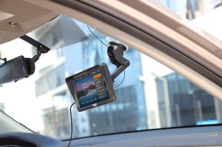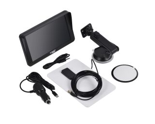 Díky přiloženému držáku lze zařízení snadno umístit na čelní sklo nebo palubní desku.